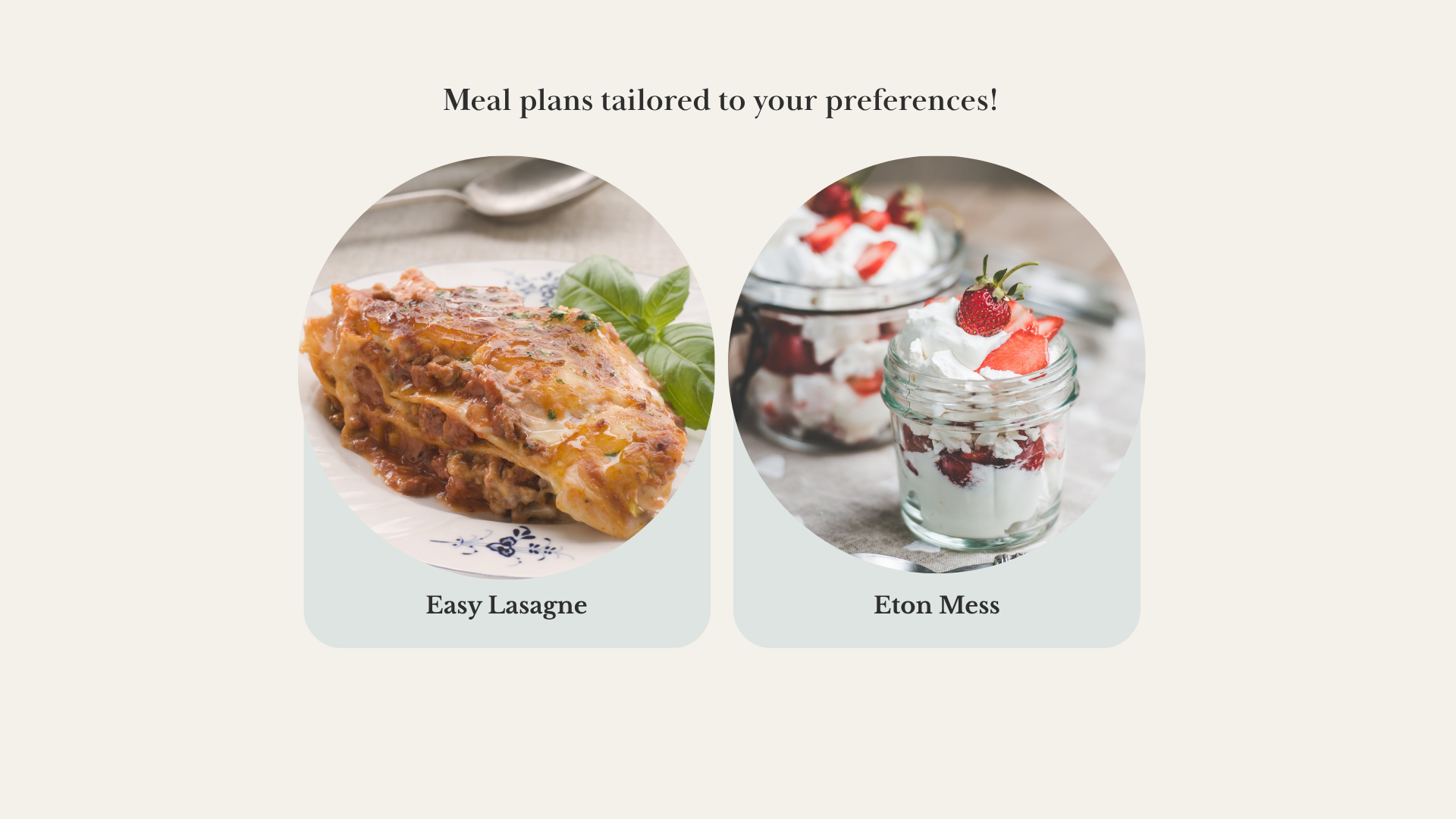 You will get a personal meal plan tailored to you and your goals, and access to our recipe books for more choice!